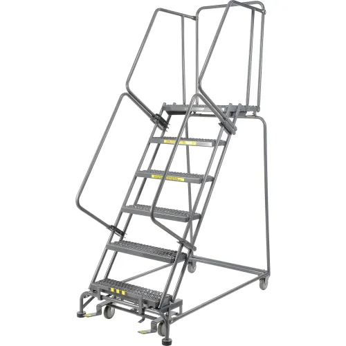 Grip 24"W 6 Step Steel Rolling Ladder 21"D Top Step- Lock Type B - FS063021G