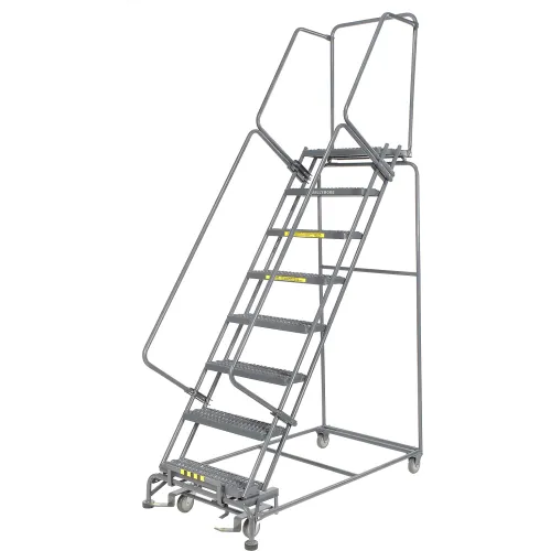 Grip 24"W 8 Step Steel Rolling Ladder 14"D Top Step - FS083214G
