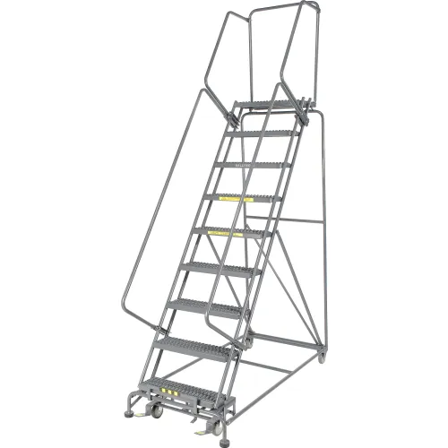 Grip 24"W 9 Step Steel Rolling Ladder 14"D Top Step - FS093214G