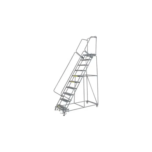 Grip 24"W 10 Step Steel Rolling Ladder 14"D Top Step, W/Cal OSHA Handrail