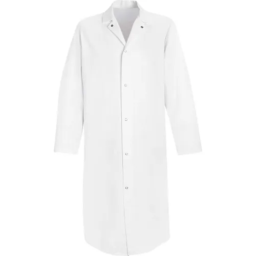 Red Kap® Gripper-Front Butcher Frock W/o Pockets, White, Polyester/Cotton Twill, XL