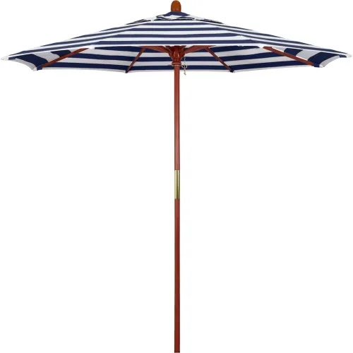 California Umbrella 7.5' Patio Umbrella, Grove Series, Hardwood Pole, Olefin Navy/White CabanaStripe