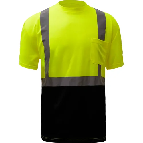 GSS Safety 5111, Class 2, Microfiber Birdseye Short Sleeve T-Shirt W/ Black Bottom, Lime, 3XL Tall