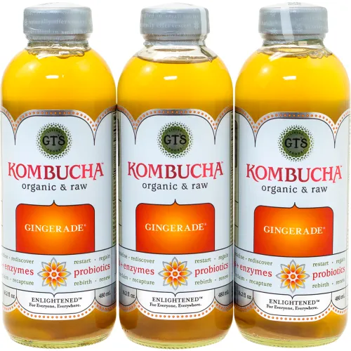 GT'S Organic Raw Kombucha Gingerade, 16 oz, 6 Pack