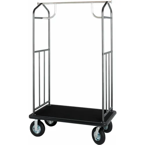 Hospitality 1 Source Bellman's Transporter Cart - Hammertone Finish, Black Deck, 6" Pneuamtic Wheels