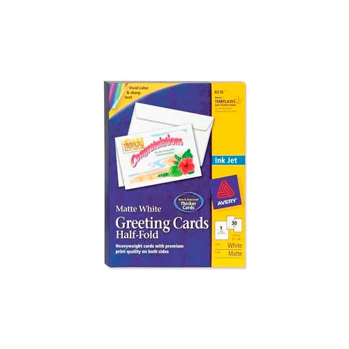 Avery® Half-Fold Greeting Card with Envelope, 8-1/2" x 5-1/2", Matte, White, 30 Sheets/Pack