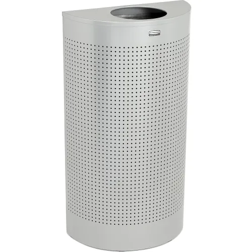 Rubbermaid® Silhouette Steel Half Round Trash Can W/Plastic Liner, 12 Gallon, Silver Metallic