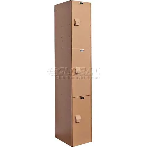Hallowell® AquaMax 3-Tier 3 Door Plastic Locker, 12"W x 18"D x 72"H, Taupe, Assembled