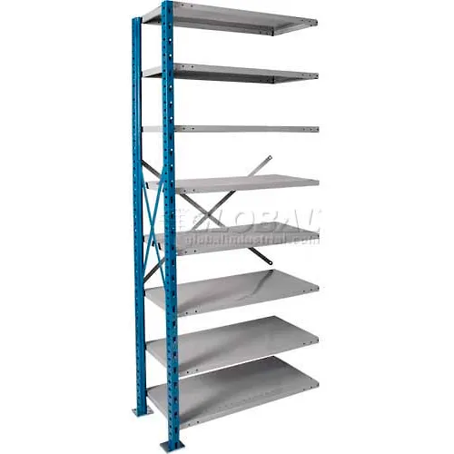 Hallowell H-Post High Capacity Shelving 36"W x 24"D x 123"H 8 Adj Shelves Open Style, Shelf Add-On