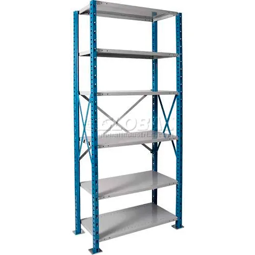 Hallowell H-Post High Capacity Shelving 48"W x 24"D x 123"H 6 Adj Shelves Open Style, Shelf Starter