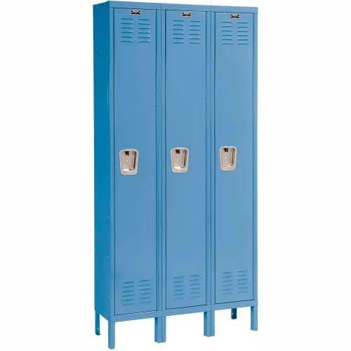 Hallowell® 1-Tier 3 Door Premium Locker, 36"W x 15"D x 78"H, Blue, Assembled