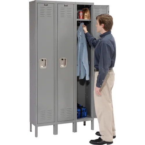 Hallowell® 1-Tier 3 Door Premium Locker, 54"W x 21"D x 78"H, Dark Gray, Unassembled