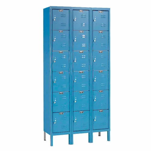 Hallowell® 6-Tier 18 Door Premium Locker, 36"W x 12"D x 78"H, Blue, Assembled