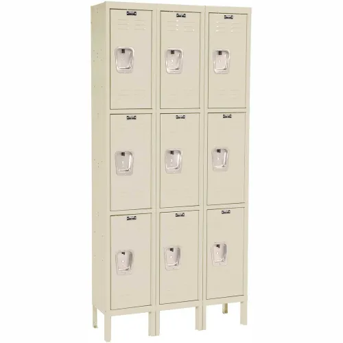 Hallowell® 3-Tier 9 Door Premium Locker, 36"W x 15"D x 78"H, Tan, Assembled
