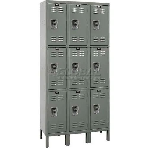 Hallowell® Ready-Built 3-Tier 9 Door Locker, 36"W x 15"D x 78"H, Dark Gray, Assembled