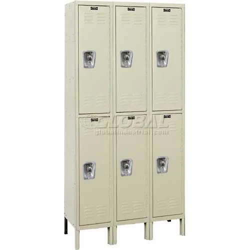 Hallowell® Ready-Built 2-Tier 6 Door Locker, 36"W x 15"D x 78"H, Tan, Assembled