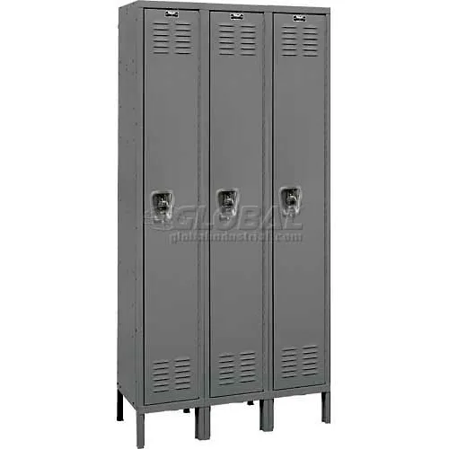 Hallowell® Ready-Built 1-Tier 3 Door Locker, 36"W x 18"D x 78"H, Dark Gray, Assembled