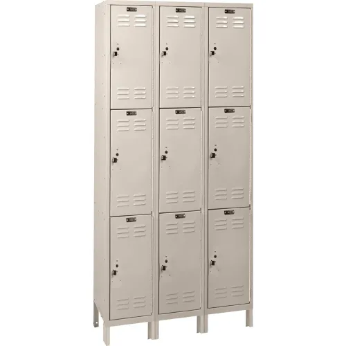 Hallowell® ValueMax 3-Tier 9 Door Locker, 36"W x 15"D x 78"H, Tan, Assembled