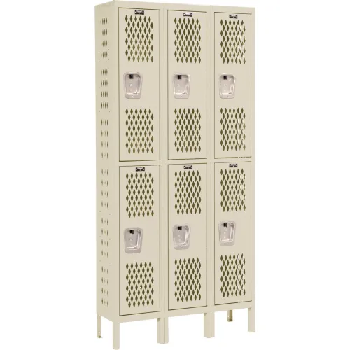 Hallowell® 2-Tier 6 Door Heavy Duty Ventilated Locker, 36"W x 18"D x 78"H, Tan, Assembled