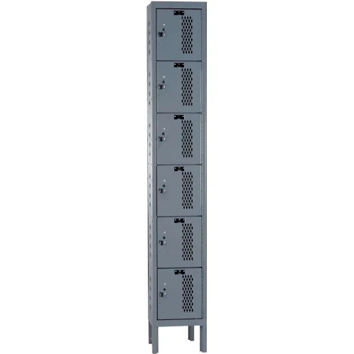 Hallowell® 6-Tier 6 Door Heavy Duty Ventilated Locker, 12"W x 15"D x 78"H,Dark Gray,Unassembled