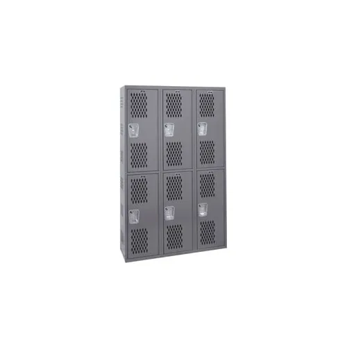 Hallowell® 2-Tier 6 Door Single-Point Ventilated Locker, 36"Wx12"Dx72"H, Dark Gray, All-Welded