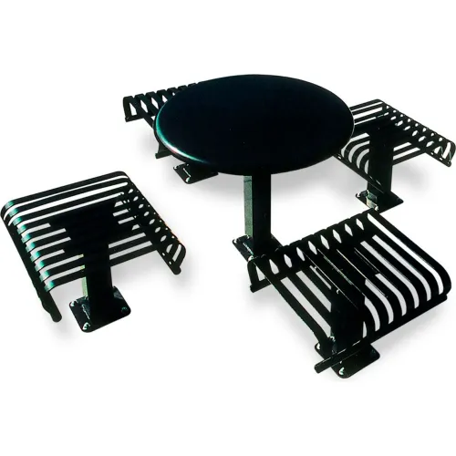 UltraSite® Hamilton Round Picnic Table w/ 2 Seats, Inground Mount, Steel, Black, 36"L