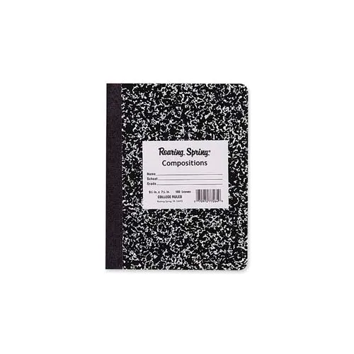 Roaring Spring® Hard Cover Comp Book, 7-1/2" x 9-3/4", College Ruled, Black Marble, 100 Sheets