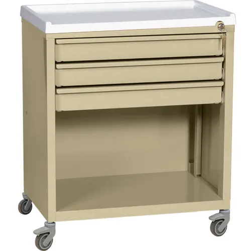 Harloff Treatment Cart with Three Drawers Lower Open Storage, Beige - ETC-3