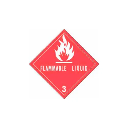 "Flammable Liquid" Hazard Class 3 Labels, 4"L x 4"W, White & Red, Roll of 500