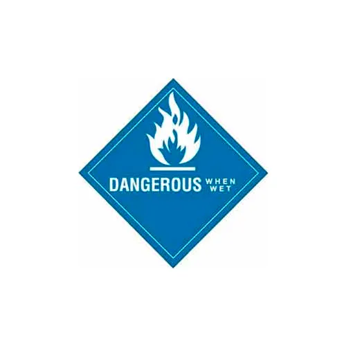 "Dangerous When Wet" Hazard Class 4 Labels, 4"L x 4"W, White & Blue, Roll of 500