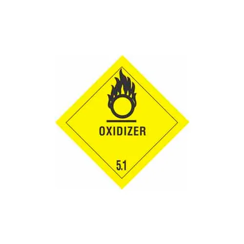 "Oxidizer 5.1" Hazard Class 5 Labels, 4"L x 4"W, Yellow & Black, Roll of 500