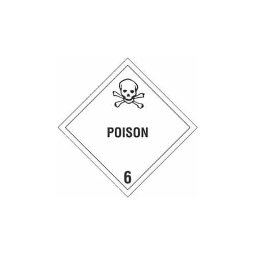 "Poison" Hazard Class 6 Labels, 4"L x 4"W, White & Black, Roll of 500