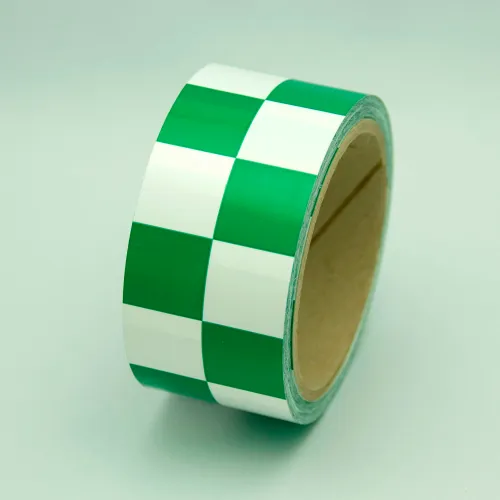 Hazard Marking Tape, Green/White Checker, 2"W x 54'L Roll, LCB213