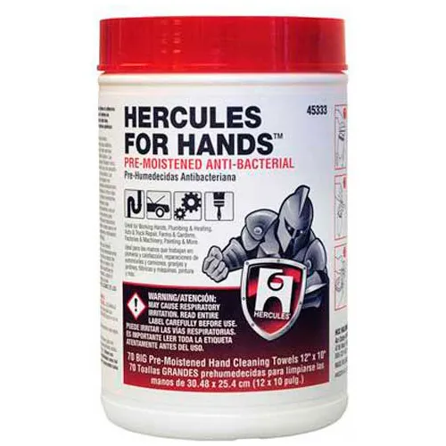 Hercules 45333 Hercules For Hands - Pre-Moistened Towels 70 Towels Per Tub 12" x 10" - Pkg Qty 6