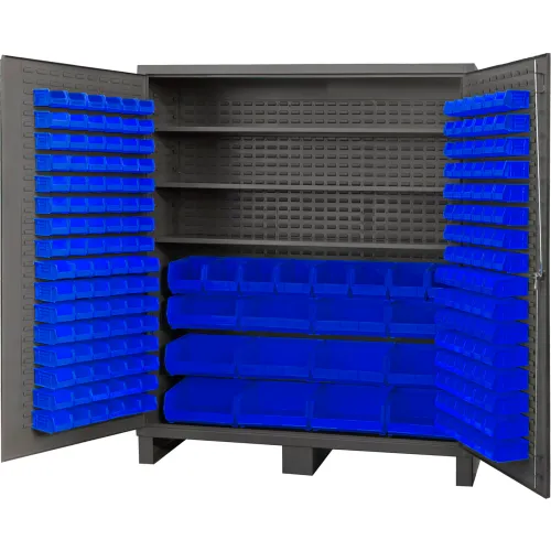 Durham Mfg.® HD Bin Storage Cabinet, 216 Blue Bins, All-Welded, 72-1/8"W x 24"D x 84"H