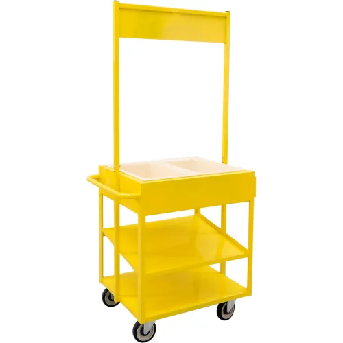 New Age Industrial HD Mobile Merchandising, Comfort Cart with Cold Food Pans & Signage Rail, Yellow