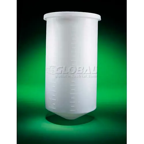 Saint Gobain HDPE, 30 Gal., Conical-Bottom Tank w/Cover, 18"Dia. x 35"H, 3/16"Wall, White