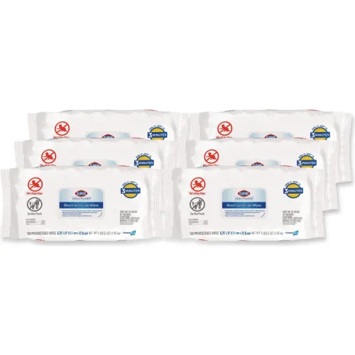 Clorox Healthcare® Bleach Germicidal Wipes, 1-Ply, 6.75" x 9", (6) 100 Wipes/Flat Pack