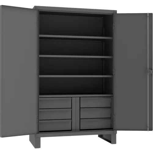 Durham® Heavy Duty Storage Cabinet w/ 6 Drawers & 4 Shelves, 12 Gauge, 48"W x 24"D x 78"H, Gray