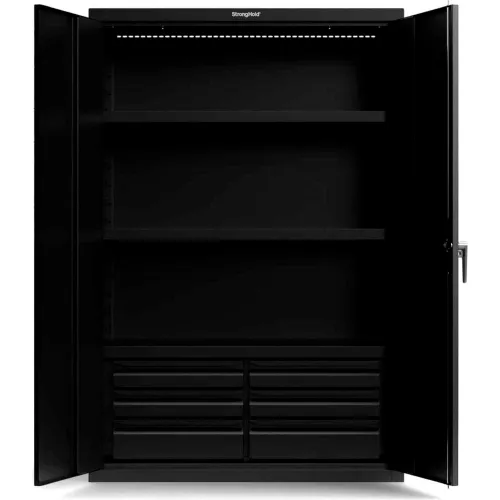 Stronghold Heavy Duty Cabinet, 3 Shelves, 6 Halfwidth Drawers, 18 Gauge, 48"W x 24"D x 72"H, Black