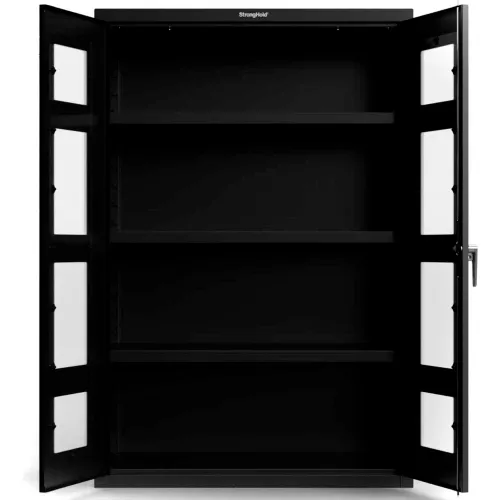 Stronghold Heavy Duty Clear View Cabinet, 48"W x 24"D x 72"H, All-Welded, Black