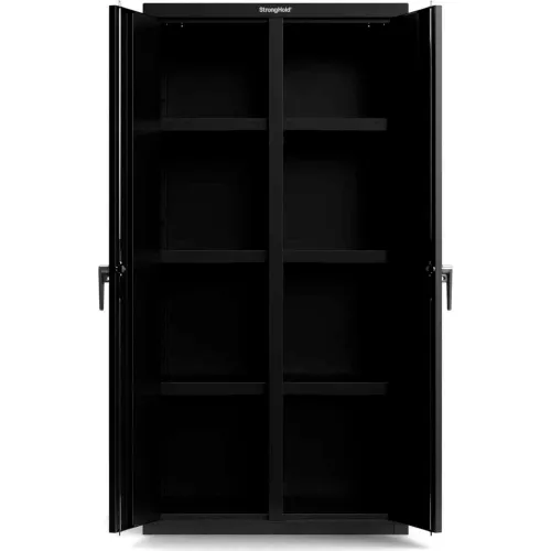 Stronghold Heavy Duty Double Shift Cabinet, 6 Shelves, 18 Gauge, 36"W x 24"D x 72"H, Black