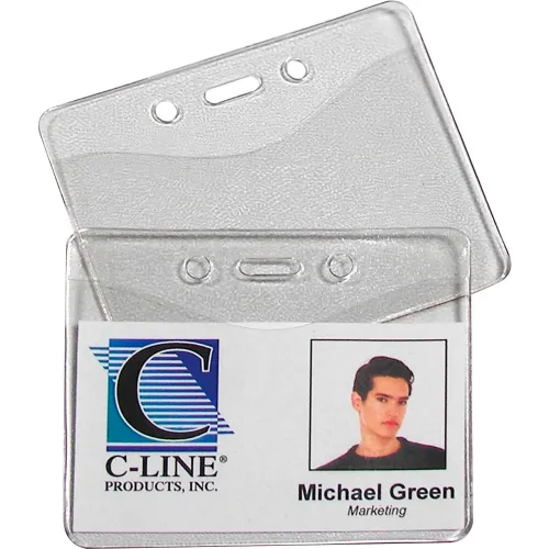 C-Line Products Heavy Duty Badge Holders, Vinyl, Horizontal, 2 3/8 x 3 3/8, 100/BX