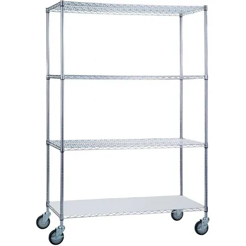 R&B Wire Products Heavy Duty Chrome Linen Cart with Solid Bottom Shelf, 48"L x 18"W x 78"H