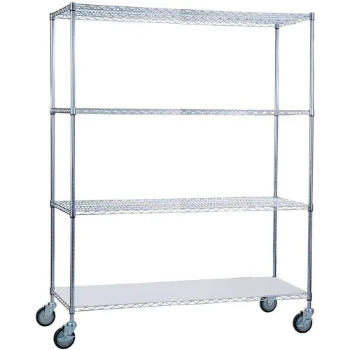 R&B Wire Products Heavy Duty Chrome Linen Cart with Solid Bottom Shelf, 60"L x 18"W x 78"H