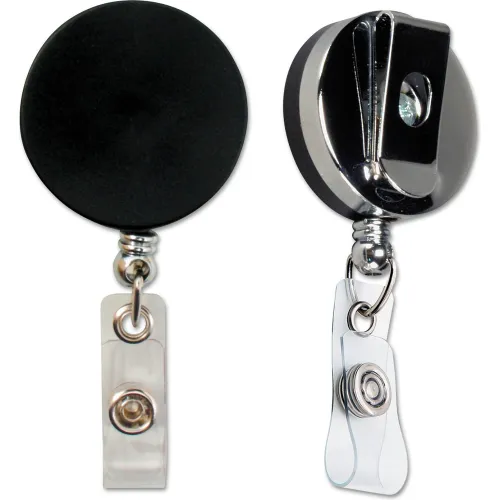 Baumgartens® Heavy-Duty ID Card Reel with Belt Clip, 30" Cord, 1-5/8" Diameter, Black/Chrome