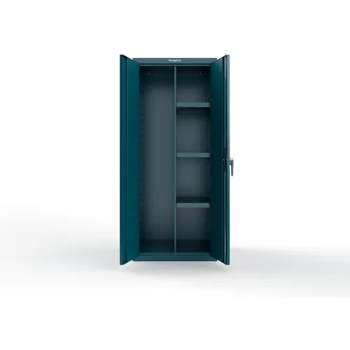 Strong Hold® Heavy Duty Janitorial Cabinet w/ 3 Half Shelves, 30"W x 24"D x 72"H, Blue