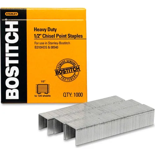 Stanley Bostitch® Heavy-Duty Staples, 85 Sheet Capacity, 1/2" Leg Length, 1000/Box