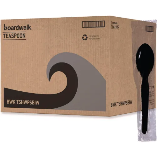 Boardwalk® Heavyweight Wrapped Polystyrene Cutlery, Teaspoon, Black, 1,000/case