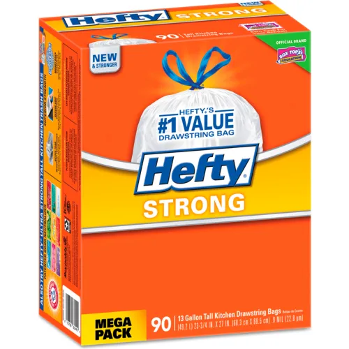 Hefty® Strong Tall Kitchen Drawstring Trash Bags - White, 13 Gal, 0.9 Mil, 90/Box -RFPE84574